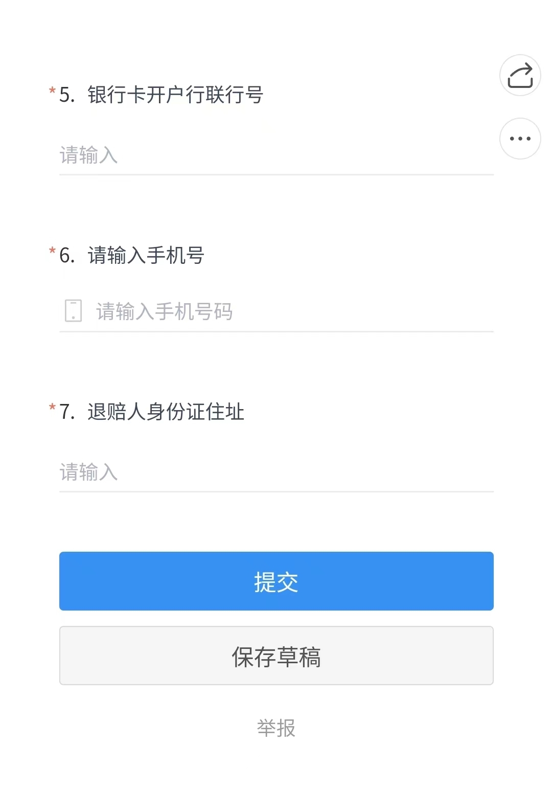填报姓名、身份证号、接收退赔款银行卡号(账户必须开立在退赔人员本人名下)、开户行名称、开户行联行号、电话号码(电话号码需与“蜀桑源”游戏平台注册电话号码一致)、身份证地址等信息并提交。