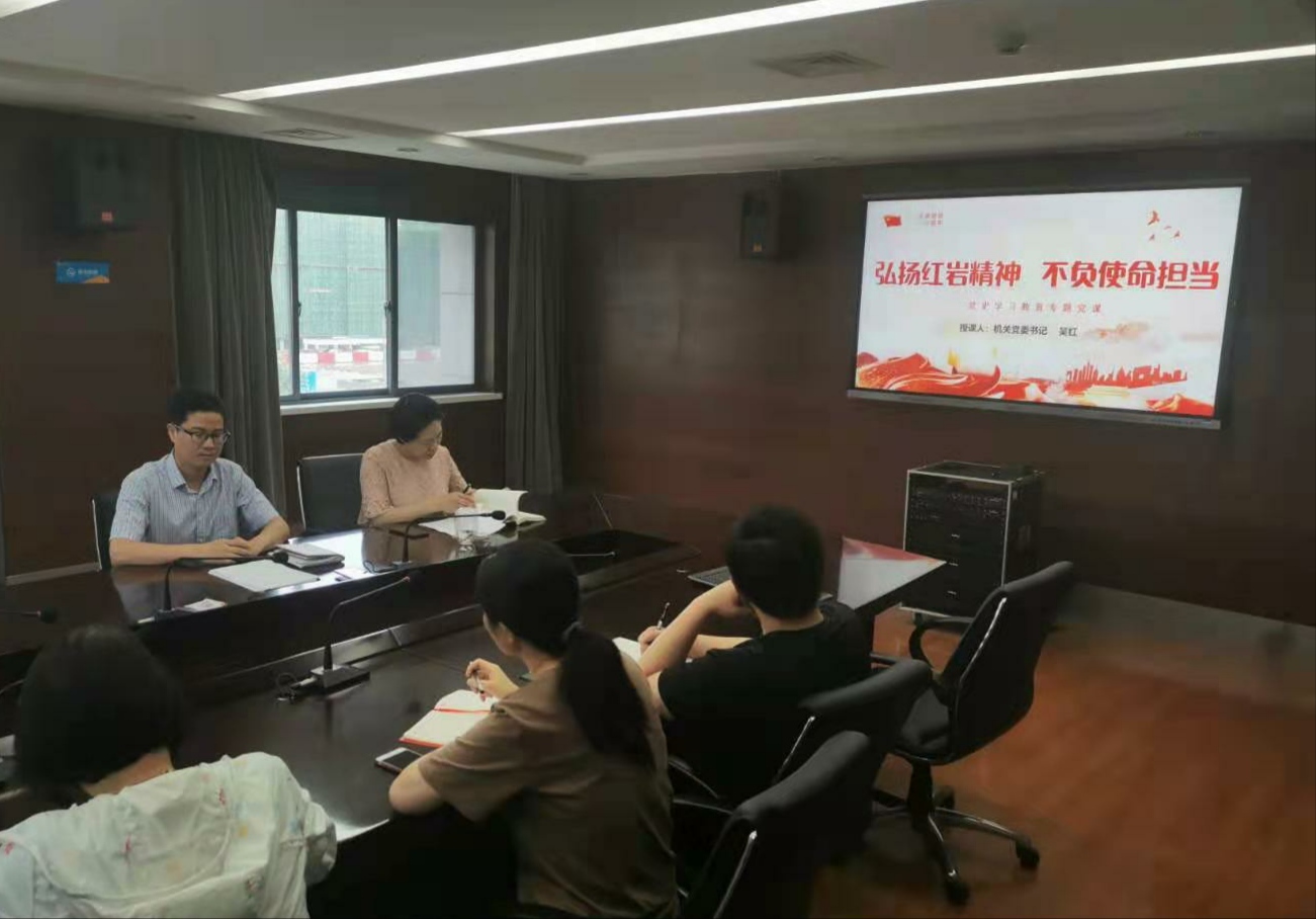 按照市公积金中心党史学习教育安排,7月7日,中心副主任、党组成员吴红以《弘扬红岩精神 不负使命担当》为题为机关第一支部全体党员讲“七一”专题党课。