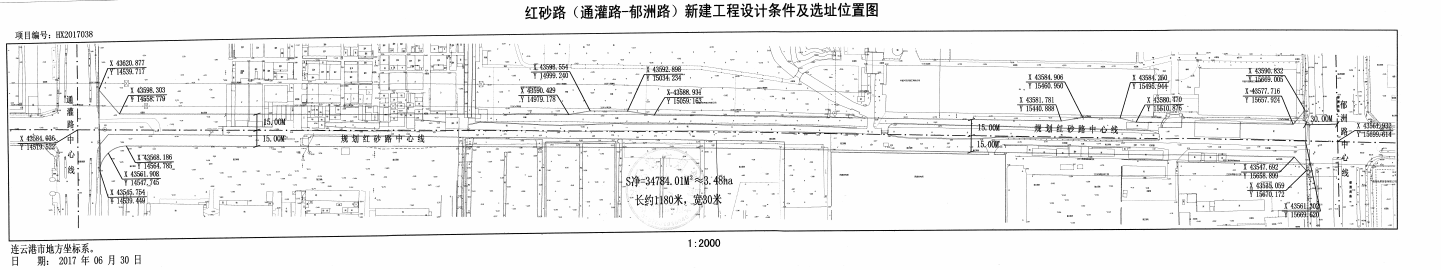 红砂路(通灌路-郁洲路)新建工程房屋征收红线范围(详见红线图)。