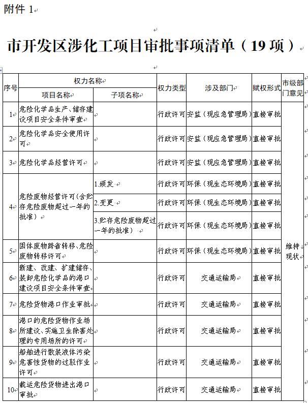 附件:1.市开发区涉化工项目审批事项清单(19项)