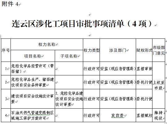 4.连云区涉化工项目审批事项清单(4项)